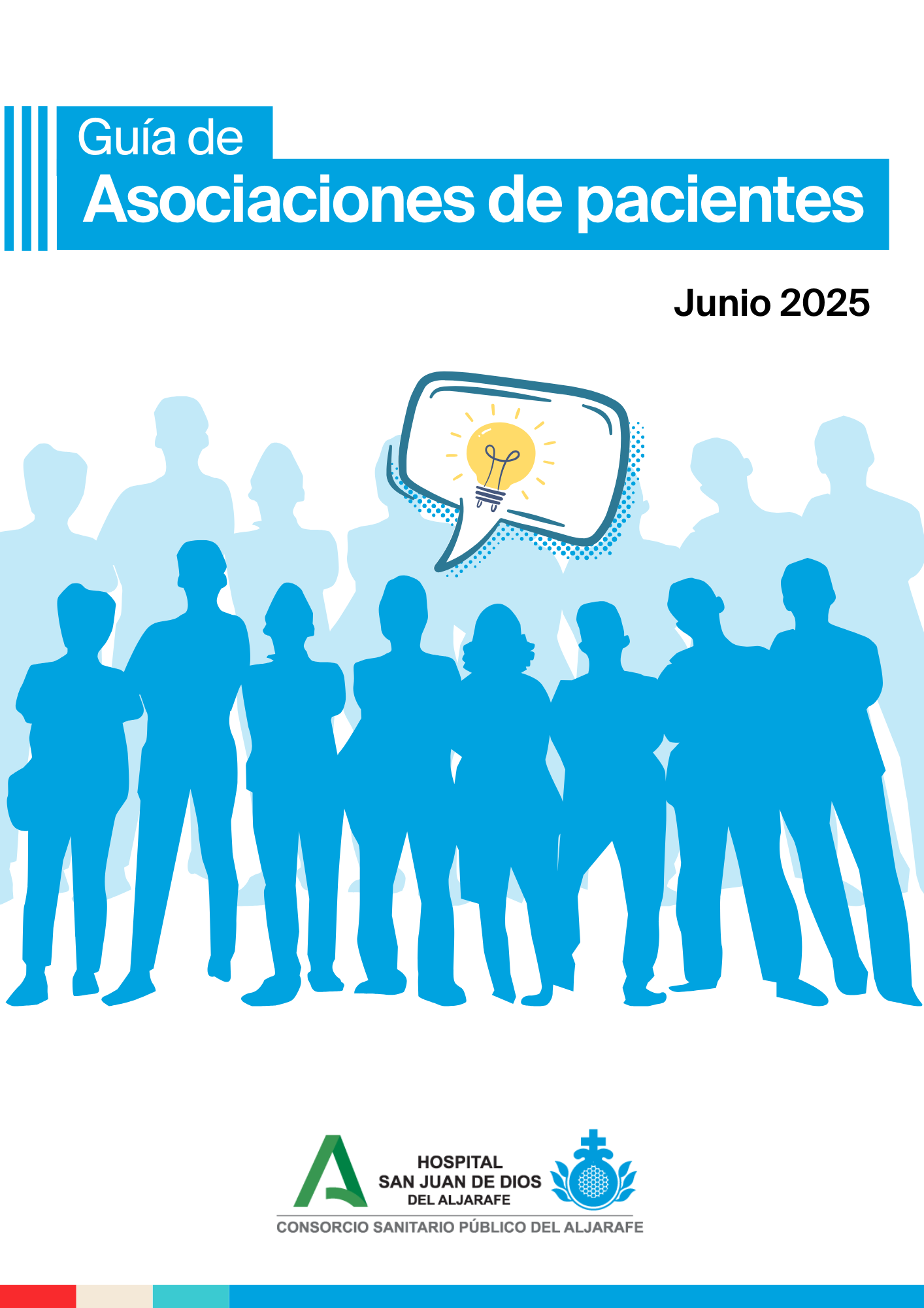En el Hospital San Juan de Dios del Aljarafe creemos firmemente que la mejor manera de avanzar hacia un sistema sanitario más humano, acogedor y eficaz es trabajando en conjunto: profesionales sanitarios, pacientes y familiares, compartiendo perspectivas, experiencias y necesidades. Esta Guía de asociaciones de pacientes nace con ese mismo espíritu colaborativo para dar visibilidad a las asociaciones que actúan en nuestro territorio y acercar a las personas usuarias de nuestro hospital a los recursos que estas ofrecen: acompañamiento, orientación, formación y apoyo emocional, entre otros.