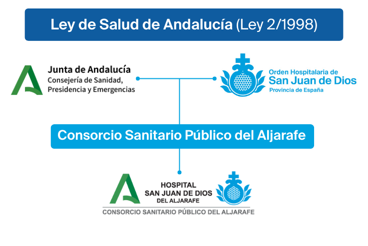 El Hospital San Juan de Dios del Aljarafe (HSJDA) presta su servicio a los usuarios del Aljarafe a través de un modelo de gestión que en 2023 ha cumplido veinte años de actividad. El 25 de noviembre de 2003 el Consejo de Gobierno de la Junta de Andalucía autorizó la creación del Consorcio Sanitario Público del Aljarafe con la Orden Hospitalaria de San Juan de Dios (OHSJD) con el objetivo de ofrecer asistencia sanitaria especializada a la comarca sevillana del Aljarafe y pueblos limítrofes. Esto supuso la integración de este hospital en la red del Sistema Sanitario Público de Andalucía y su consiguiente sujeción a las directrices de calidad y continuidad asistencial fijadas por la administración sanitaria autonómica.